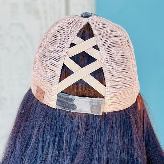 Runs on coffee camo cross back hat