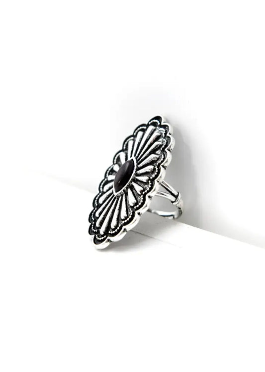 Adjustable Oval Concho Ring with Black Accent
